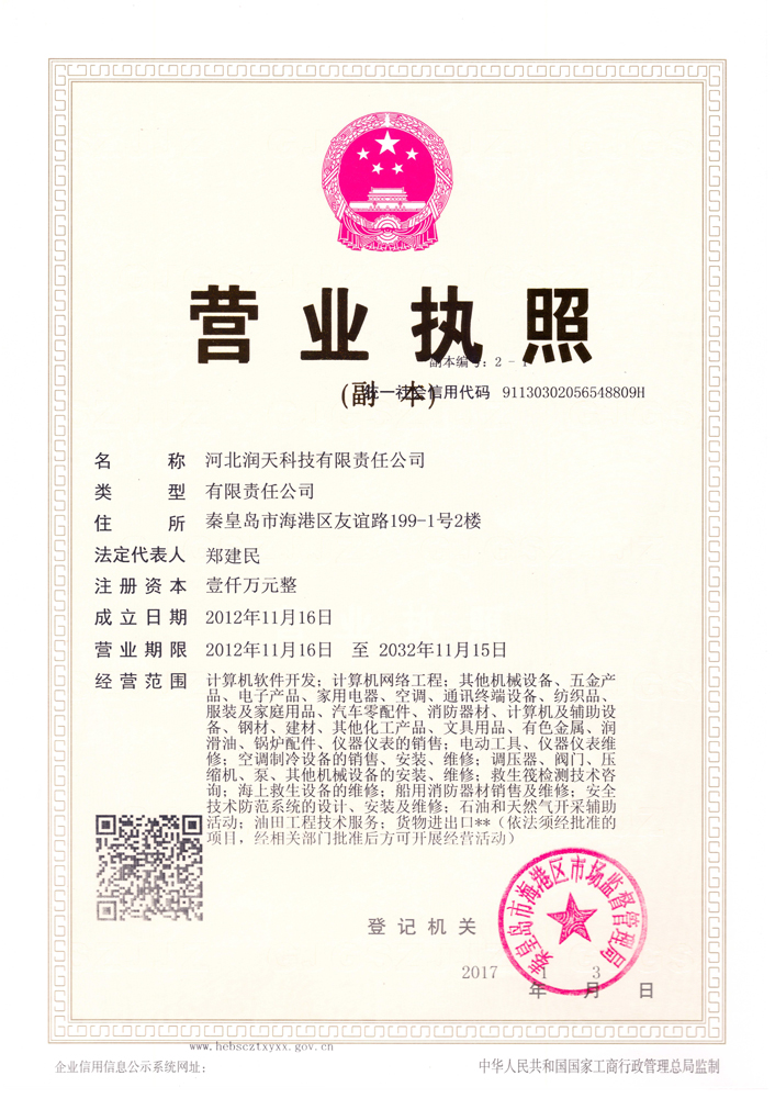 河北潤天科技有限責任公司始于2000年成立,公司以工業(yè)、應(yīng)急救援產(chǎn)品貿(mào)易為基礎(chǔ),主營安全設(shè)備、安全裝備、儀器儀表的銷售、維修及檢驗檢測;公司通過了CMA、CNAS實驗室認證及特種設(shè)備檢驗檢測機構(gòu)核準以...[更多]